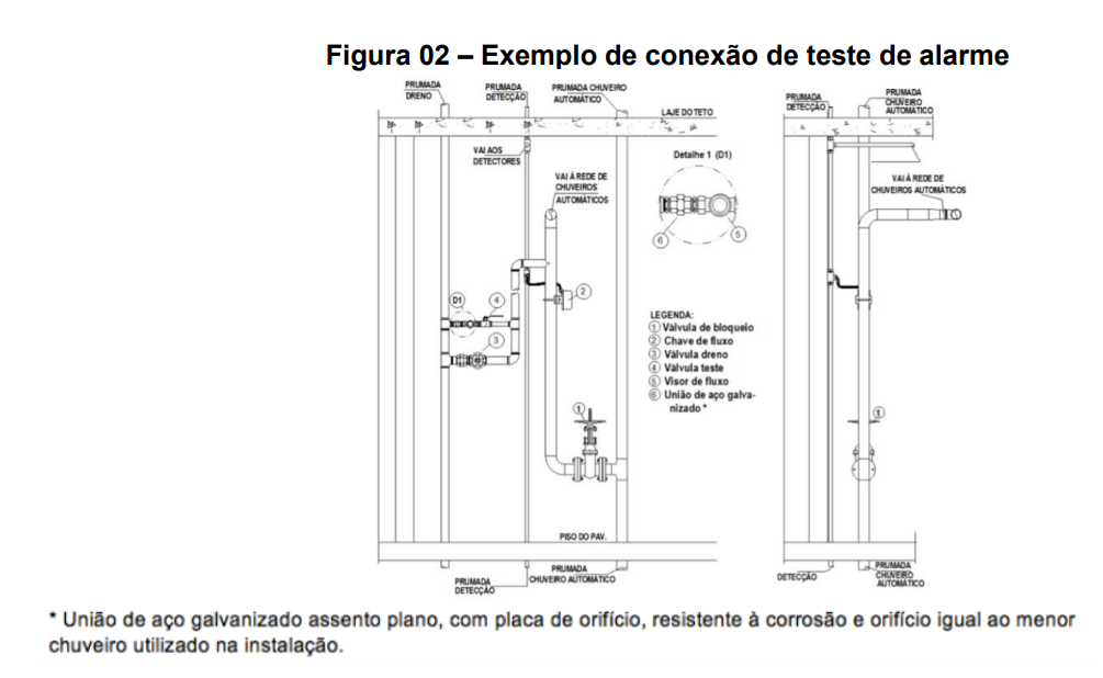 Existem diferentes tipos de sprinklers para cada aplicação (padrão, cobertura estendida, ESFR para depósitos, etc.). O espaçamento entre eles e a distância até o teto são rigorosamente definidos em tabelas da norma para garantir a detecção rápida do calor e uma distribuição uniforme da água.