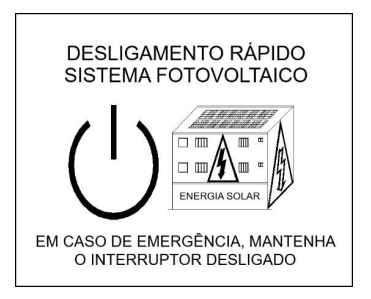 - Aviso de Sistema FV: Uma placa de alerta (triângulo amarelo com “FV”) deve ser instalada na entrada principal e nos quadros de energia.